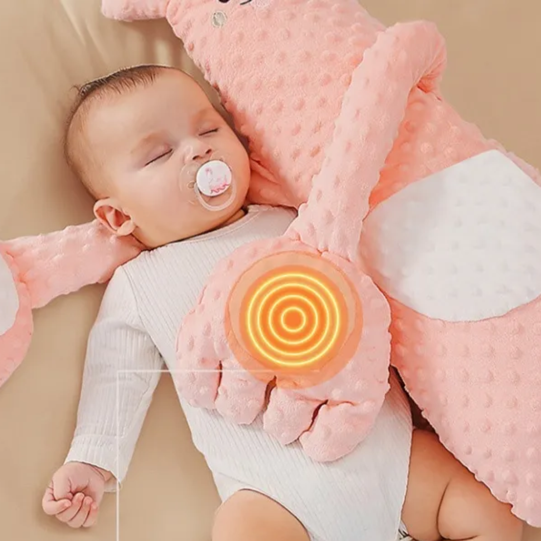 Die Arme des Kuscheltiers vermitteln das Gefühl einer Umarmung, und die Wärmefunktion hilft, Koliken zu lindern und einen ruhigeren Schlaf zu fördern.